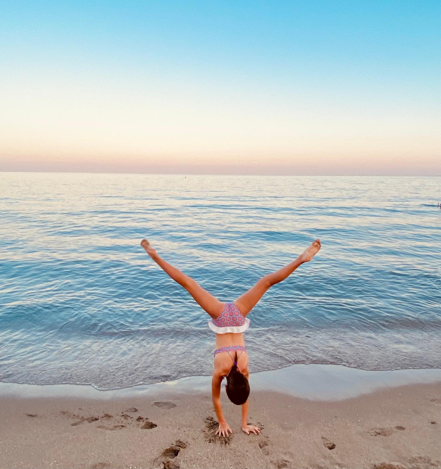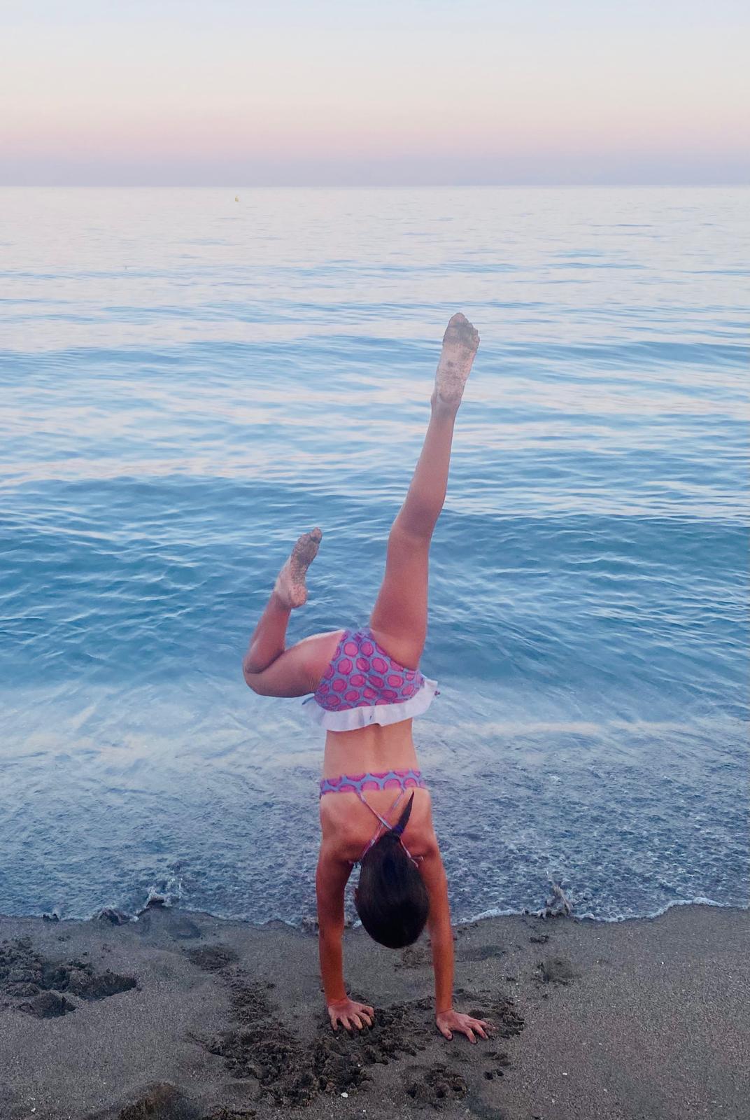 En pleno mes de agosto y con este calor todas nuestras gimnastas quieren refrescarse. Ángela Moreno nos envía fotos desde la playa pero sin olvidarse de la Gimnasia Rítmica. Agua y gimnasia rítmica, buena combinación!