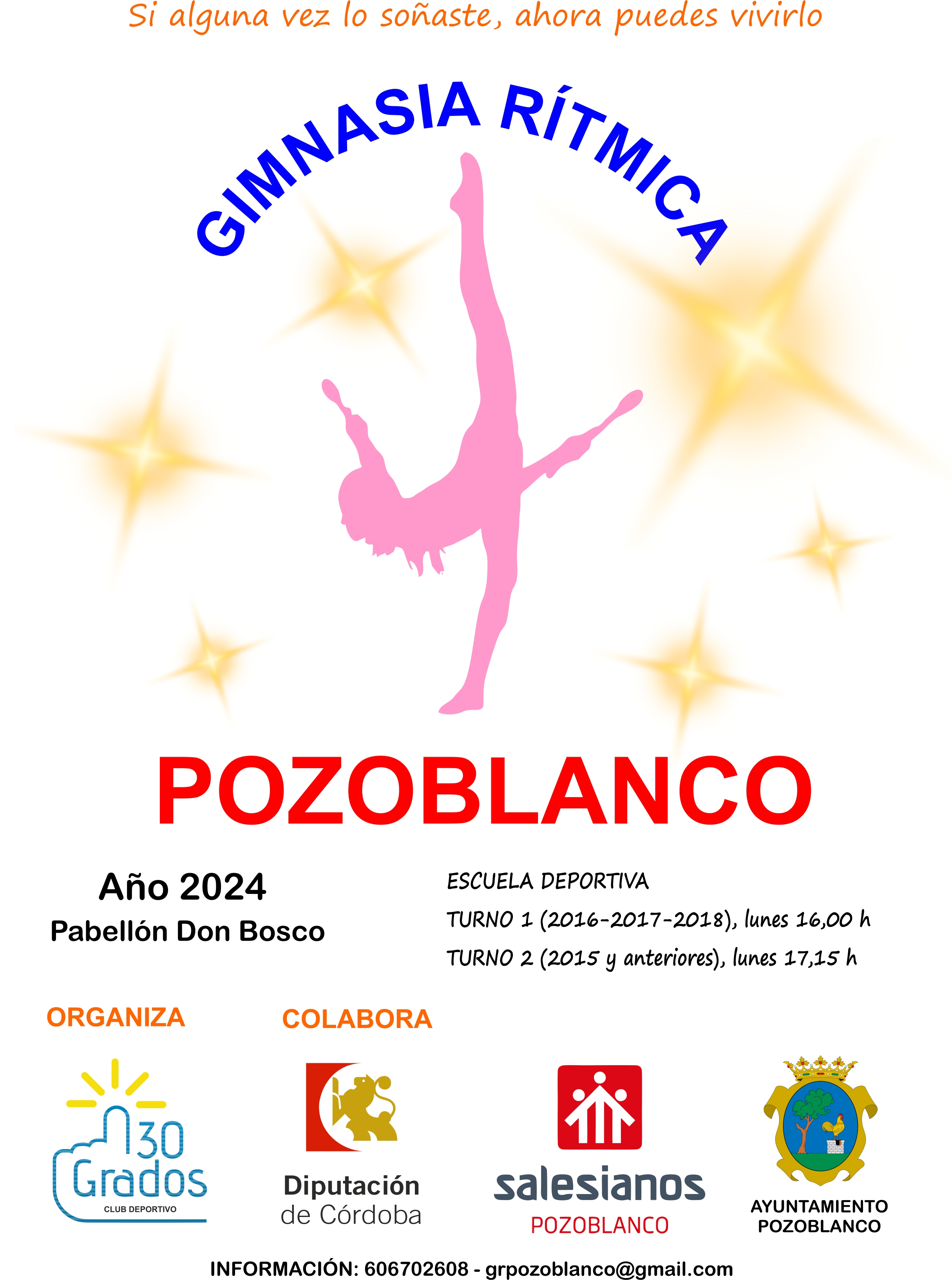 El lunes 8 de enero volvemos a retomar las sesiones de la Escuela Deportiva de Gimnasia Rítmica que el Club Deportivo 30 Grados gestiona en Pozoblanco. Con ganas de volver y seguir buscando nuevos progresos. La aventura 2024 está a punto de comenzar, con el apoyo de la Diputación Provincial, el Colegio Salesiano y el Ayuntamiento de Pozoblanco.