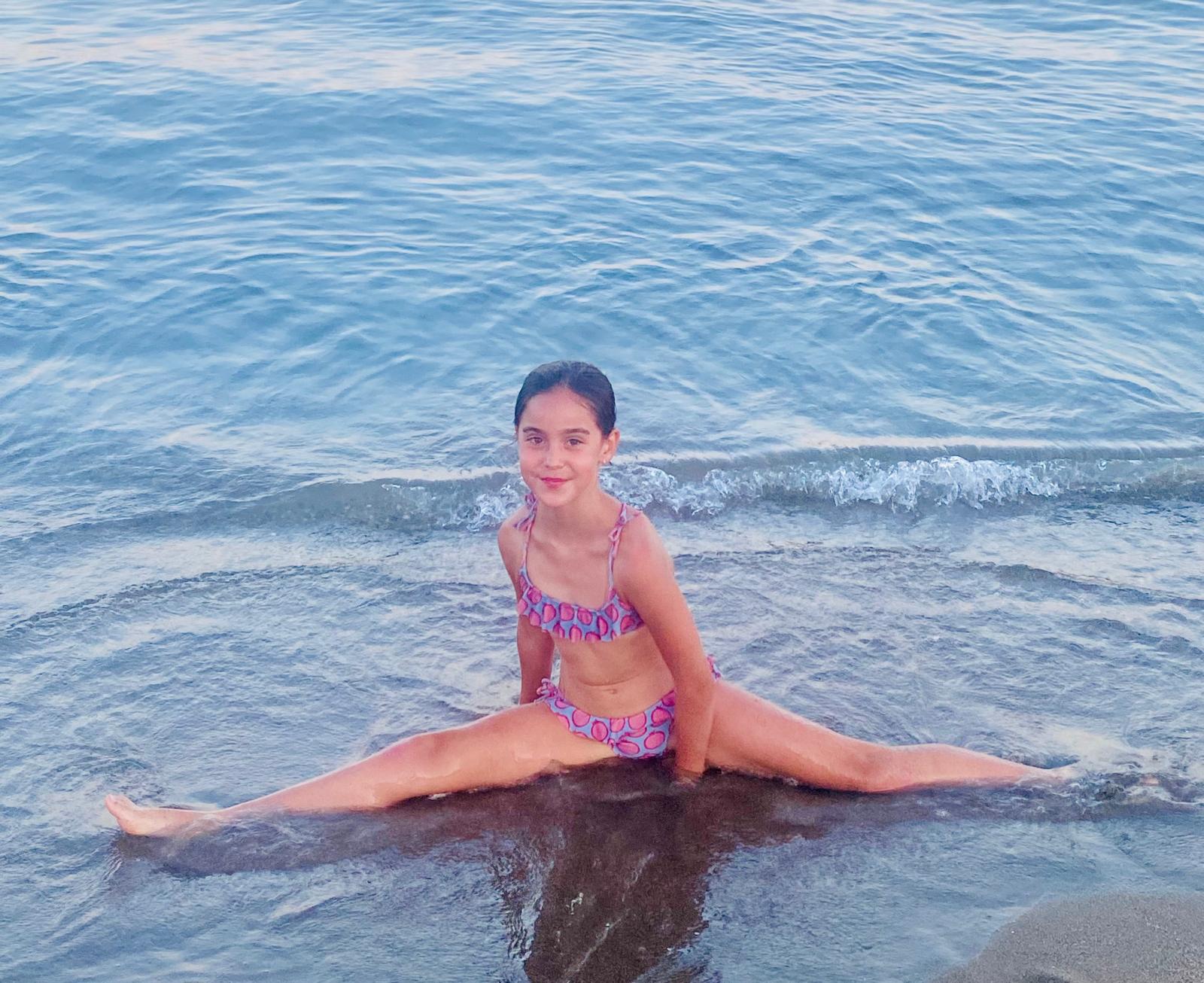 En pleno mes de agosto y con este calor todas nuestras gimnastas quieren refrescarse. Ángela Moreno nos envía fotos desde la playa pero sin olvidarse de la Gimnasia Rítmica. Agua y gimnasia rítmica, buena combinación!